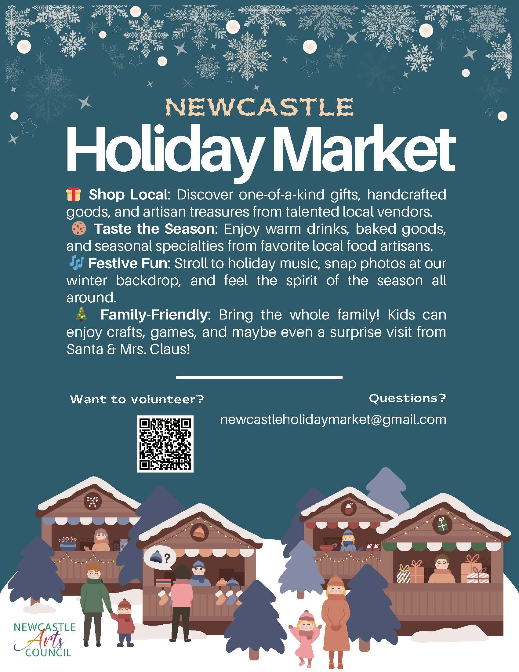 Exciting news! The Newcastle Holiday Market is back for another year! Get your shopping done early. And best of all, you'll be buying from local artisans and vendors! It's a win-win.